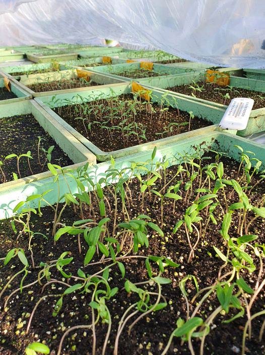 Die ausgesäten Tomatensamen haben bei uns gekeimt und warten nun darauf pikiert zu werden.