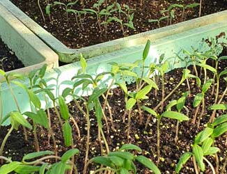 Die ausgesäten Tomatensamen haben bei uns gekeimt und warten nun darauf pikiert zu werden.