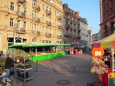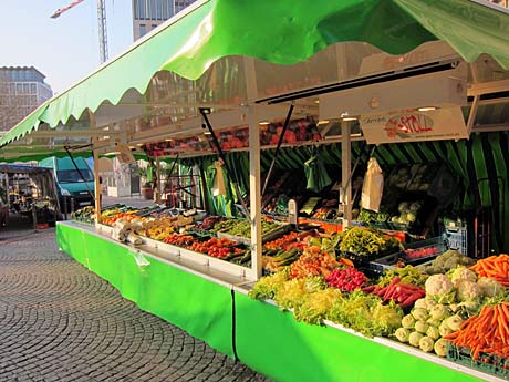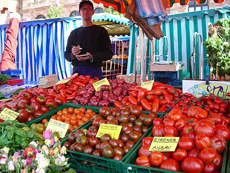 Vor den Toren Frankfurts gewachsen wird unser Obst und Gemüse ohne Umwege zu Ihnen auf den Wochenmarkt transportiert!